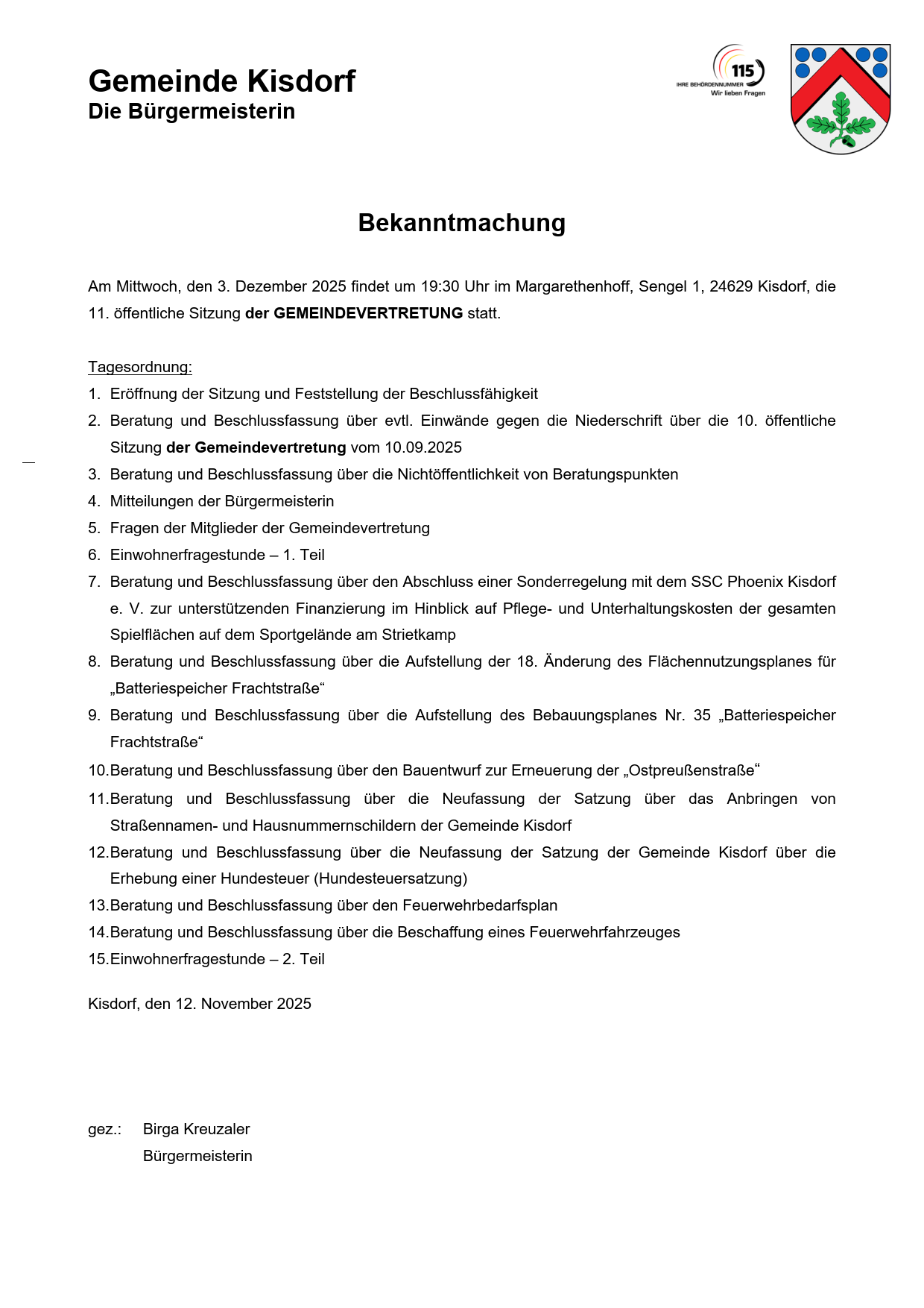 Zum einen liegt der Haushalt bis jetzt leider immer noch nicht vor, was durch die derzeit in ihren Ämtern tätigen Personen nicht zu verantworten ist, aber zunächst abgearbeitet werden muss. Daher konnte die Gemeinde keine Investitionen tätigen. Aufgrund der Dringlichkeit hat die kommunale Aufsichtsbehörde das Geld für den Bau freigegeben, damit die Fördermittel ausgezahlt werden können und um nicht weiter Zeit zu verlieren.