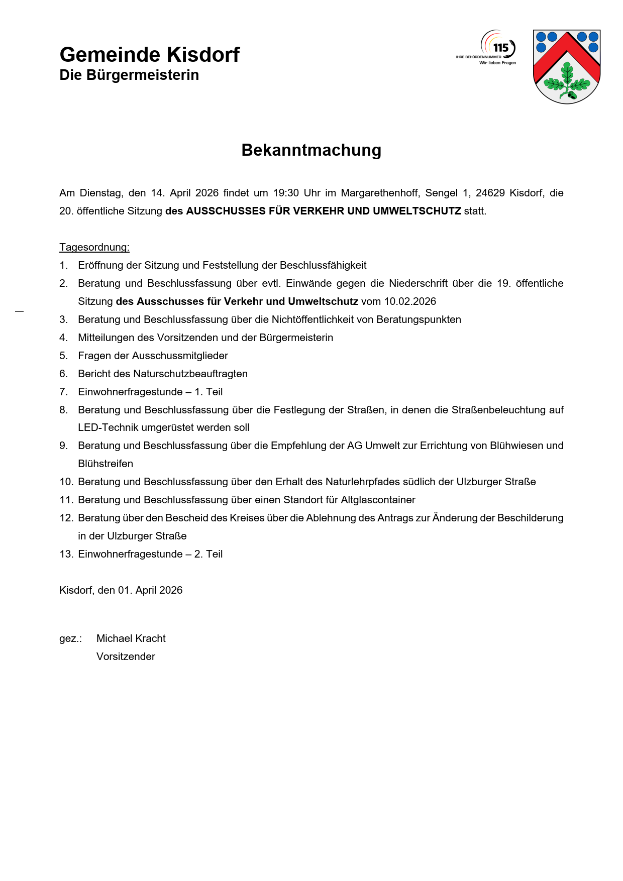 In dem genannten Beitrag wurde über den Personalkräftemangel in Kisdorfer Pflegeheimen berichtet.