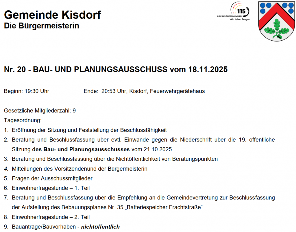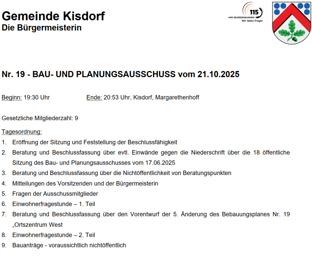 Protokolle Bau- und Planungsausschuss Gemeinde Kisdorf