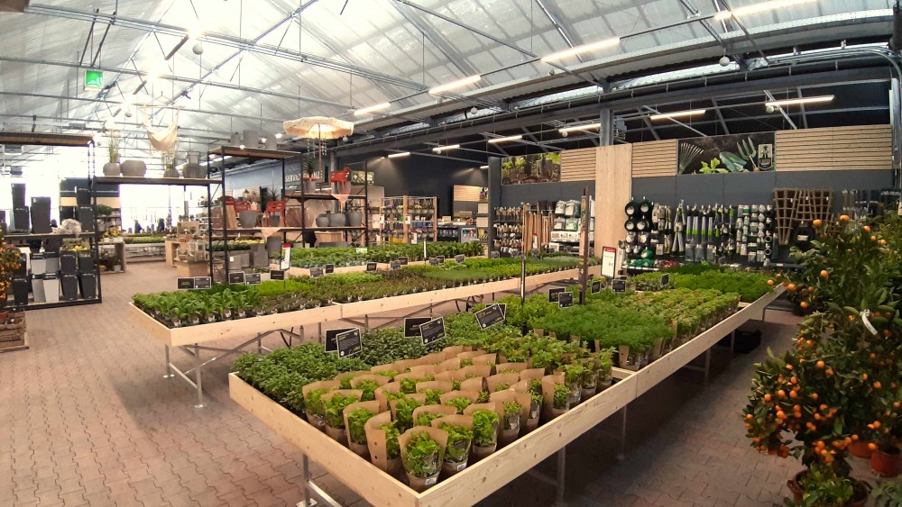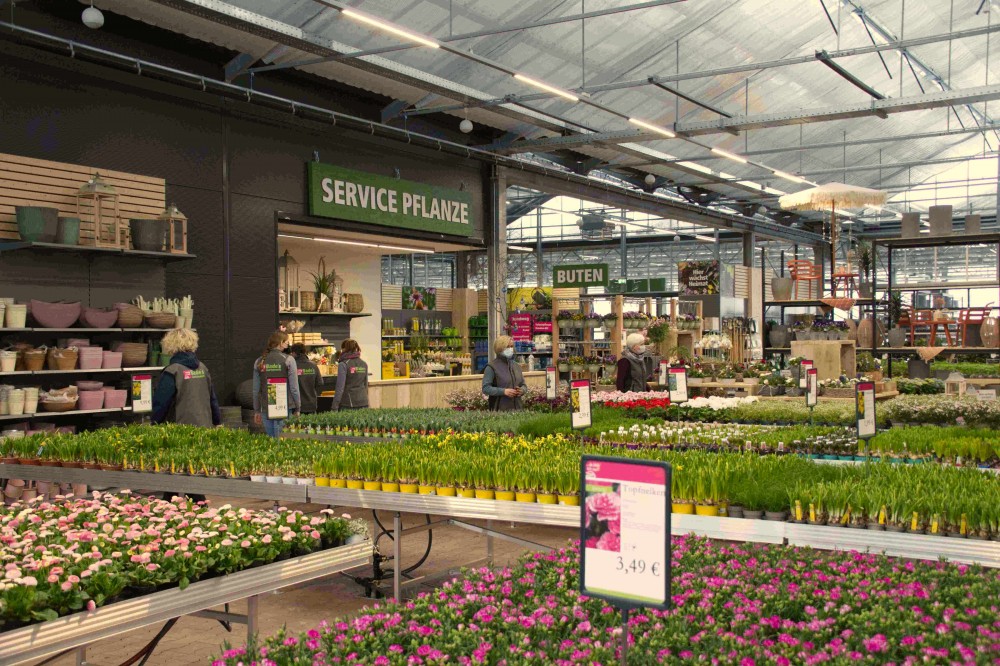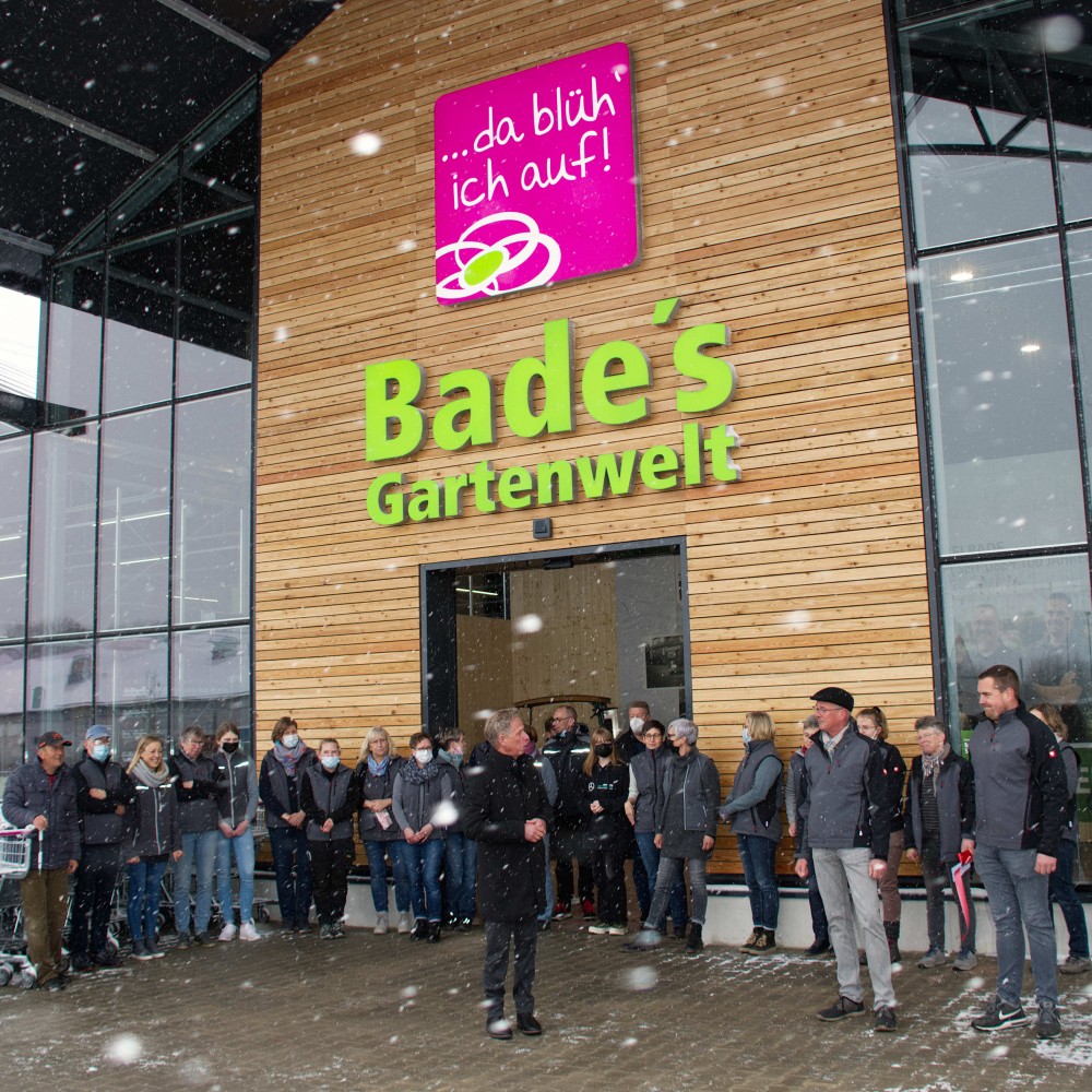 Im Gespräch erläuterte Christian Bade, dass man bei der Planung des Baus bewusst den klassischen „Gewächshaus-Charakter“ gewählt habe, um sich von konventionellen, kubistischen Flachbauten abzuheben. Auf über 4.000 qm Verkaufsfläche werden neben Gartenpflanzen und Pflanzen für den Innenbereich auch viele Accessoires, die Garten und Haus schöner machen, angeboten. Die Kunden können sich über ein breites Angebot in ansprechender Atmosphäre freuen, so dass kaum Wünsche offenbleiben.